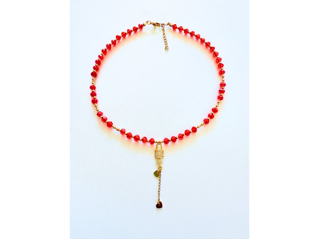 Náhrdelník typu choker s přívěskem zámku se zirkony, zlaceno 18-ti karátovým zlatem.