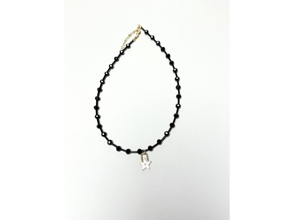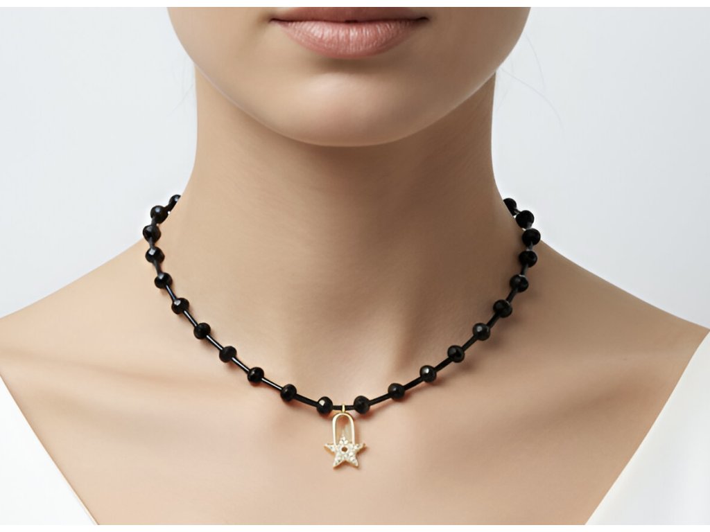 Minimalistický náhrdelník z černého skla s pozlacenými prvky