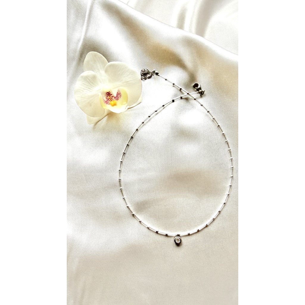 Minimalistický náhrdelník se zirkonem a unikátním českým broušeným sklem.