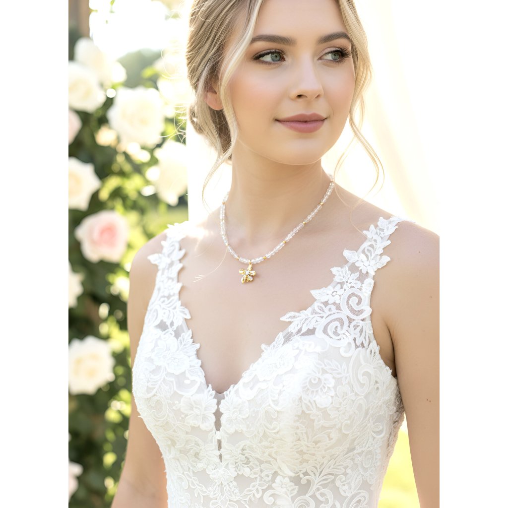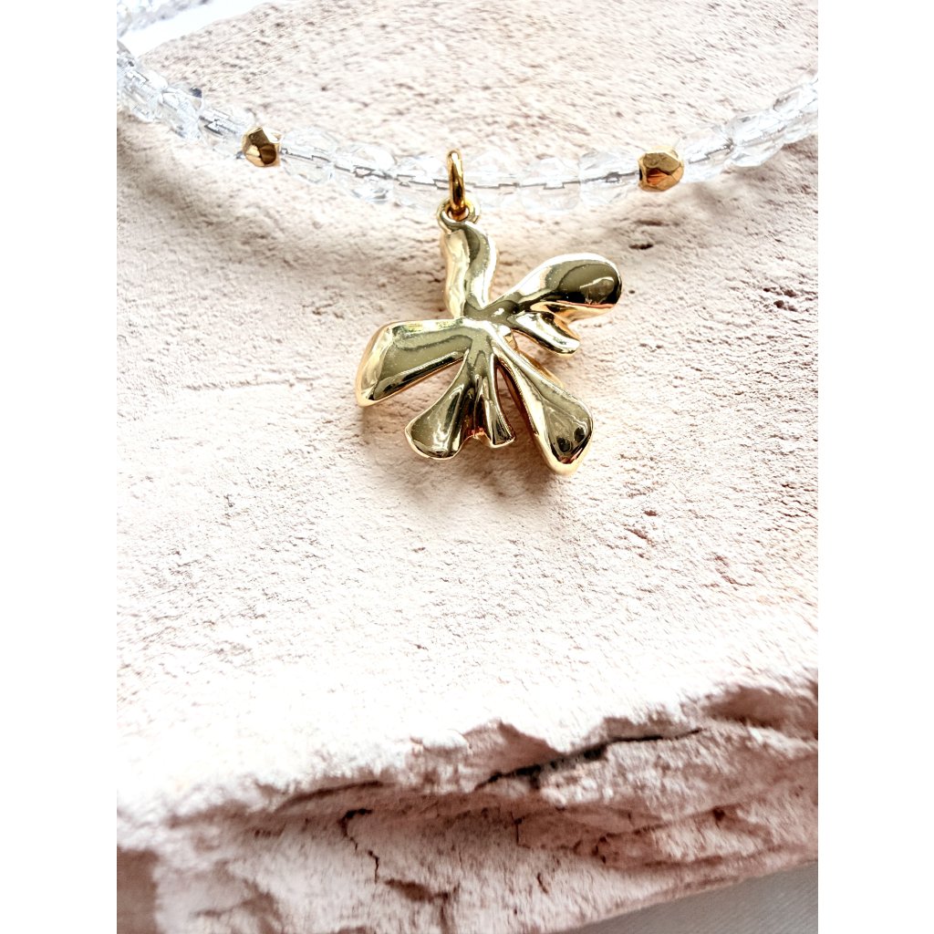 Přívěsek květina s kubickým zirkonem zlacený 18 K zlatem / povrchová úprava platina, 1,8 x 2 cm.