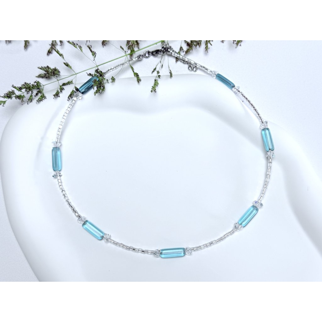 Minimalistický čirý náhrdelník s čirými krystaly v barvě máty