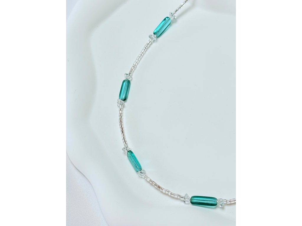 Minimalistický čirý náhrdelník s čirými krystaly v barvě máty
