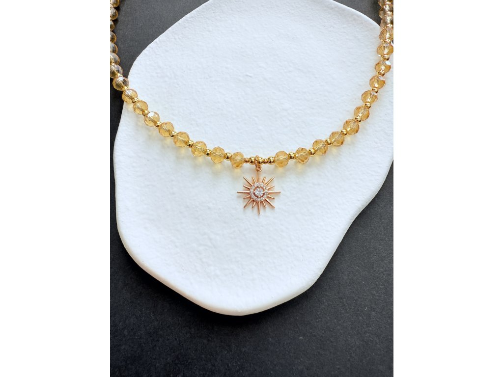 Náhrdelník typu choker s pozlaceným přívěskem se zirkony Vám přinese slunce do každého dne.