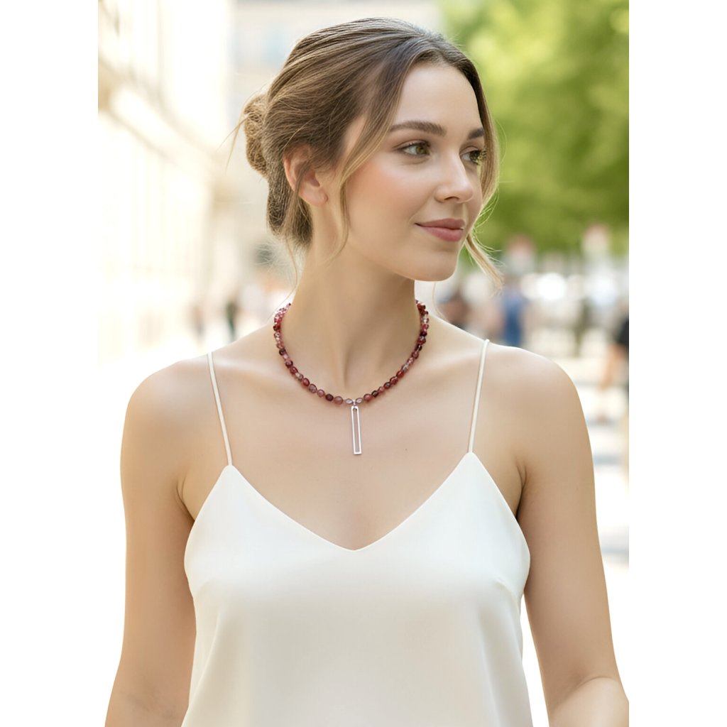 Minimalistický náhrdelník s v odstínech červené. Připomíná žhavé uhlíky, které v sobě nesou sílu ohně a vášně.