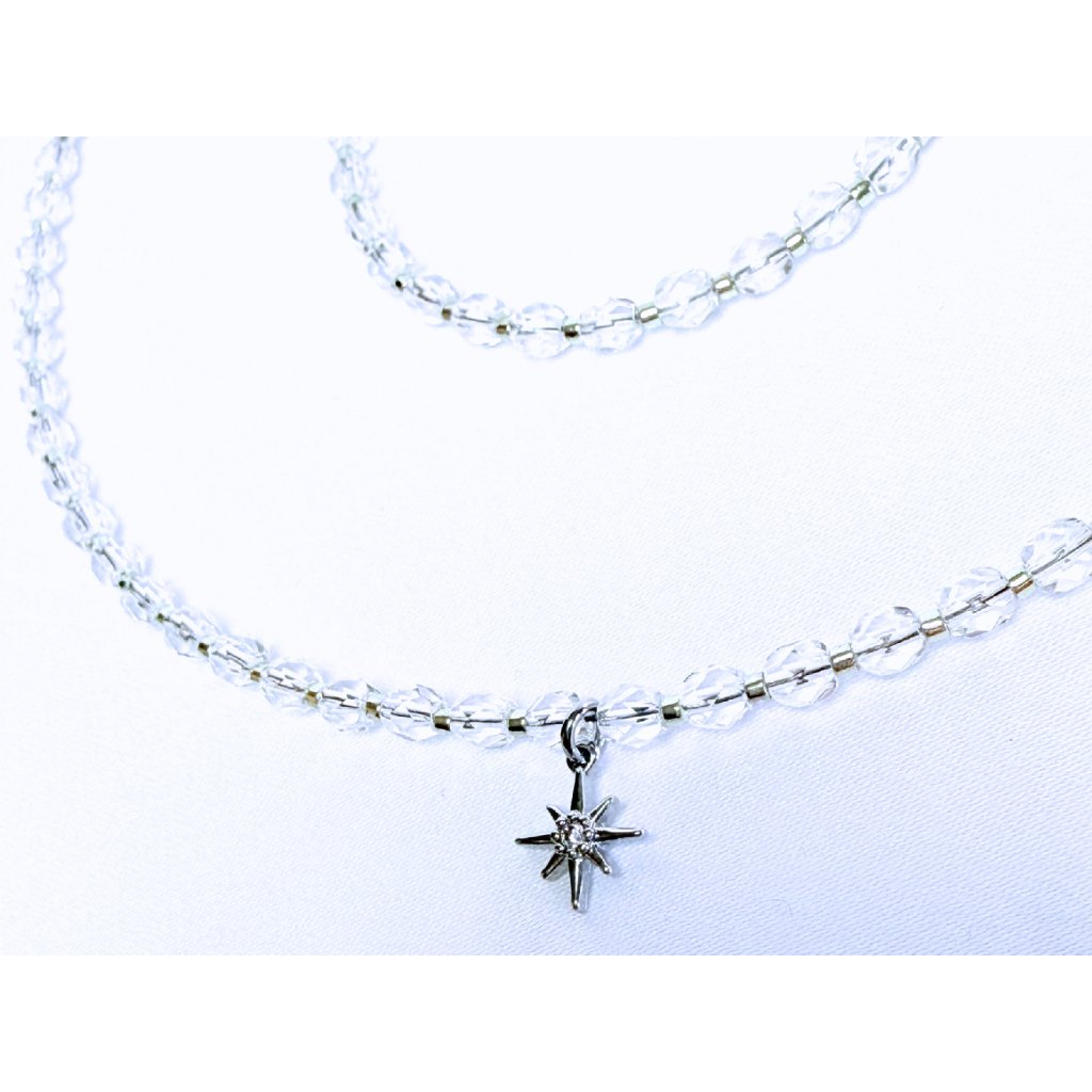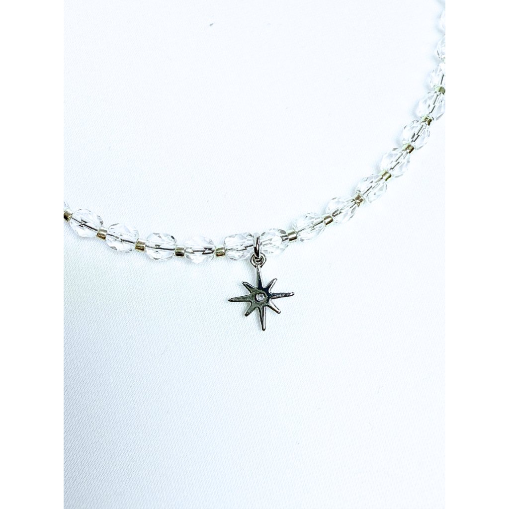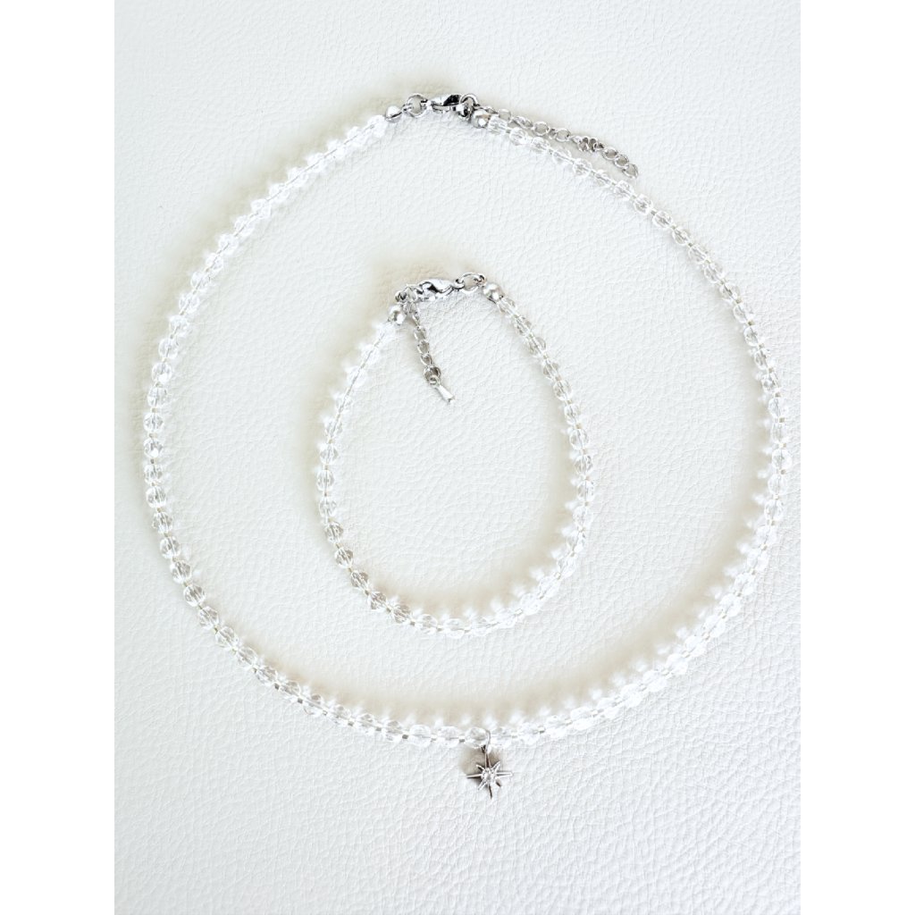 Minimalistický náhrdelník a náramek s čirými ohňovým perlami a hvězdou